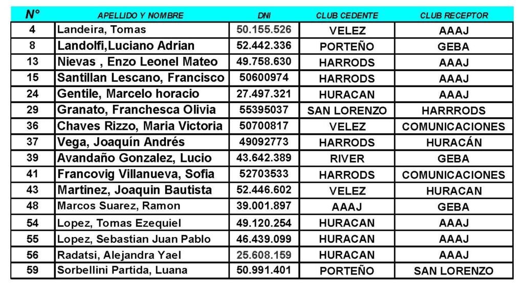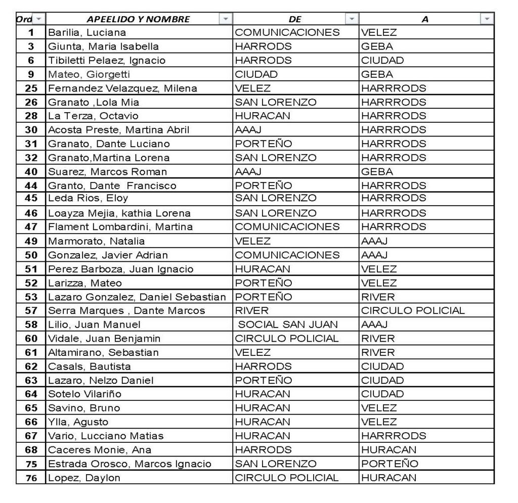 Se hace saber el listado de pases que se encuentran presentados al cierre del libro de pases, los mismos deberán cumplimentar los tramites dentro de los 30 dias corridos, caso contrario los mismos se consideraran caducos.